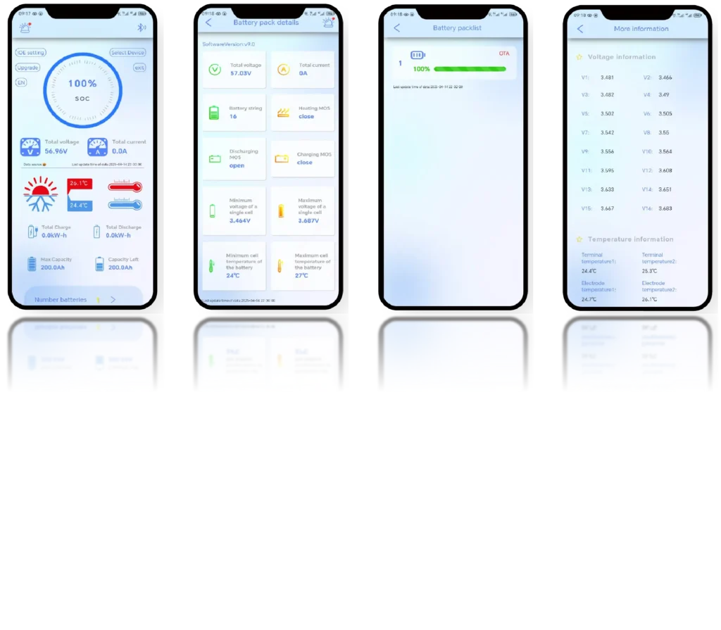 POWEROAD app provides key data such as voltage, current, temperature, battery capacity, and State of Charge (SOC), while also supporting parameter adjustments for seamless and efficient energy management.